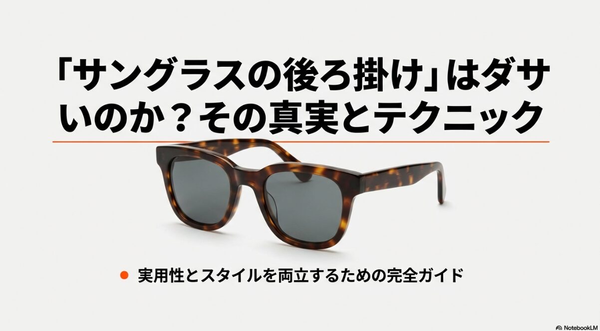 サングラスを後ろにかけるという一見ニッチなスタイルは、単なる見た目の問題や無造作な癖というわけではなく、「実用性の追求(ホールド感の維持や高価なギアの紛失防止)」と「社会性の維持(ファッション的な評価の確保や威圧感の排除)」という、時に相反する要素が複雑に絡み合った奥深いテーマであることがお分かりいただけたかと思います。
